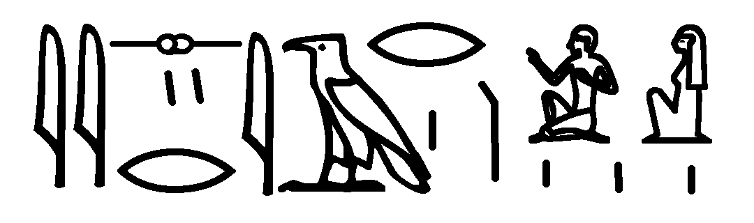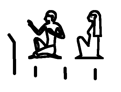 Kobieta i mężczyzna + 3 kreski – czytamy jako naród/ lud/ludzie. Czyli ten zestaw hieroglifów: