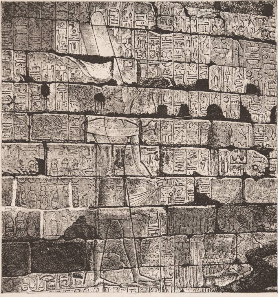 Inna, wyryta w kamieniu pamiątka tej zwycięskiej kampanii faraona znajduje się na ścianie świątyni w Karnaku.