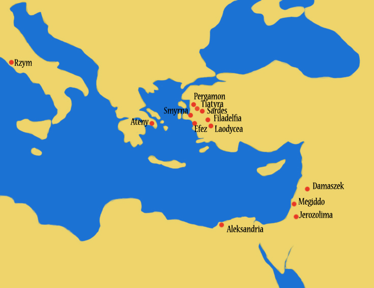 „ To, co widzisz, zapisz w księdze i wyślij do siedmiu zborów: do Efezu i do Smyrny, i do Pergamonu, i do Tiatyry, i do Sardes, i do Filadelfii, i do Laodycei”. Ap 1.11