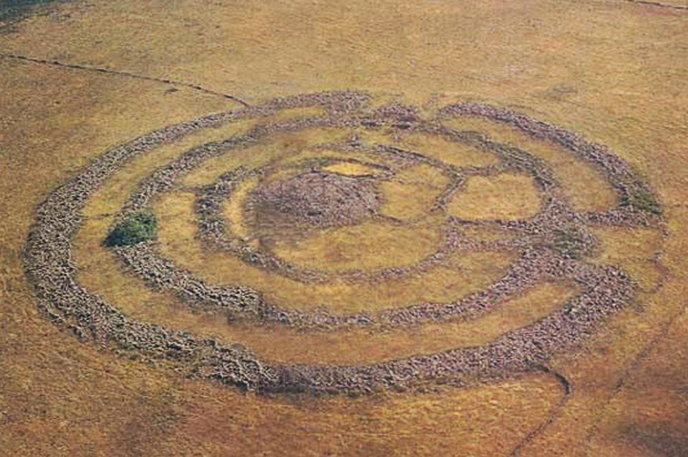 Patrząc z lotu ptaka na tę konstrukcję i swego rodzaju komórki, jakie powstają przez połączenie murem kolejnych kręgów aż kusi skojarzenie z labiryntem. Jest ono całkiem prawdopodobne, bo można dopatrzeć się, przejść, ale czy na pewno kręgi miały utrudnić dojście na przykład do centralnego kopca kryjącego komorę?